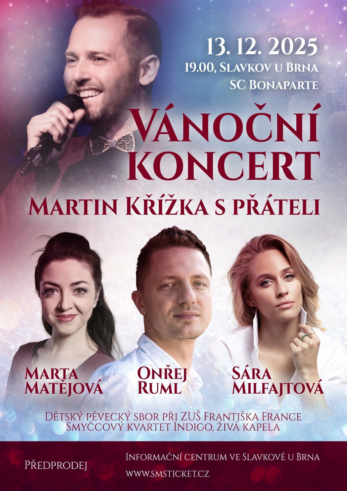 Vánoční koncert Martina Křížky s hosty Sárou Milfajtovou, Martou Matějovou, Ondřejem Rumlem, dětským sborem, smyčcovým kvartetem Indigo a živou kapelou.