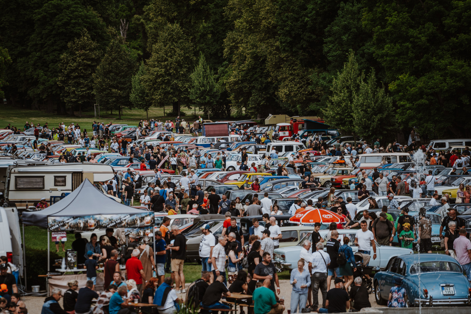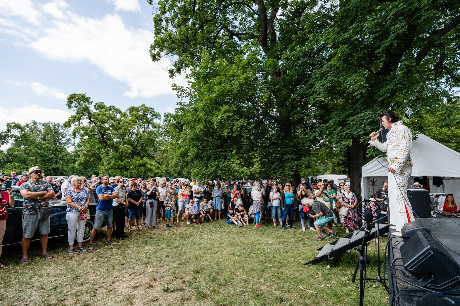 Veteranfest ale není jen o lesklých karoseriích a vůni benzínu. Celou akci doprovází dobová atmosféra, kterou dotvářejí dámy v elegantních modelech s kloboučky a paraplíčky inspirovanými první republikou, swingová hudba i taneční vystoupení přímo mezi historickými vozy. Myslí se i na nejmenší návštěvníky – Veteranfest je událostí, kde se baví celá rodina.