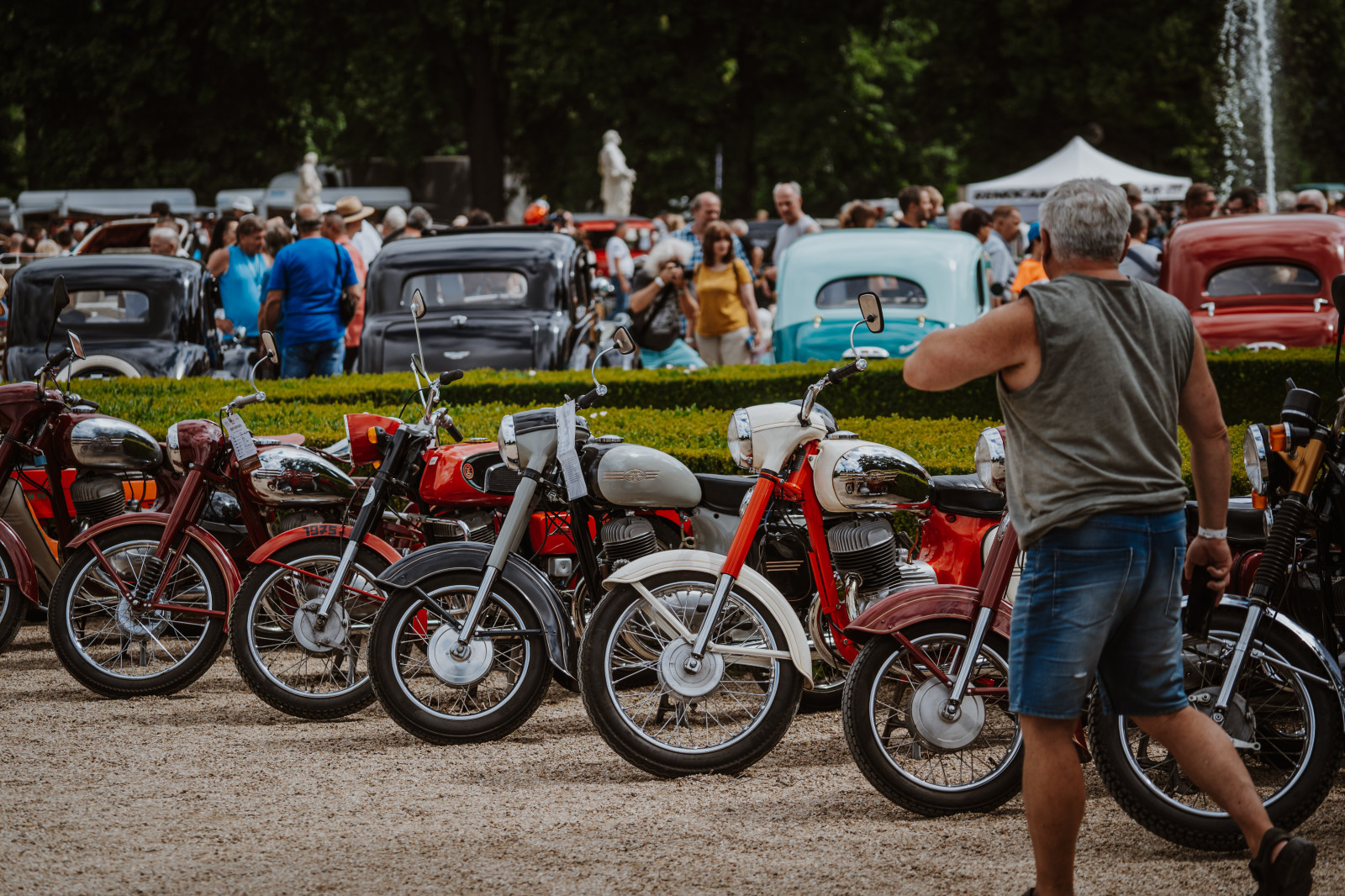 Součástí programu je také rozsáhlá burza náhradních dílů, veteránského příslušenství a starožitností, která potěší sběratele i renovátory. Kulturní program probíhá na dvou hudebních scénách a po celý den nabízí pestrou směs koncertů, vystoupení a doprovodných aktivit v krásném prostředí zámecké zahrady.