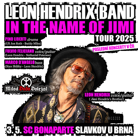 V letošním roce Leon Hendrix vyráží do Evropy koncertovat naposled a v České republice bude mít turné pouze dvě zastávky. Máme velké štěstí, že jednou z nich bude 3. května právě Slavkov u Brna. Leon Hendrix band doprovodí česká kytarová legenda Miloš Dodo Doležal a my jsme mu pro Slavkovský zpravodaj položili několik otázek: